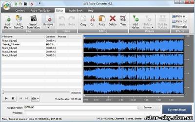 Программа для конвертирования звуковых файлов из одного формата в другой. AVS Audio Converter поддерживает конвертирование наиболее известных звуковых файлов: WAV, OGG Vorbis, MP3, MP2, Microsoft ADPCM, WMA, VOX, AAC, M4A, AMR и другие популярные форматы.