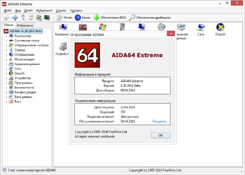 AIDA64 - эта утилита является мощным средством для идентификации и тестирования практически любых компонентов персонального компьютера под управлением операционных систем семейства Windows.