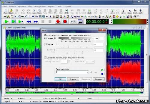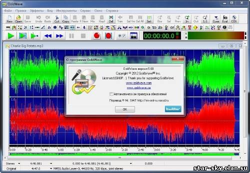 GoldWave - очень мощный звуковой редактор, предназначенный для проигрывания, редактирования, смешивания и анализа звуковых файлов. Умеет быстро работать с большими файлами. Имеет много разных эффектов. Понимает MP3, WAV, AU, IFF, VOC, SND, MAT, AIFF, raw, data, а также множество прочих форматов. Умеет конвертировать из одного формата в другой. С помощью GoldWave можно применять всевозможные эффекты (добавлять эхо, эффект "увядания" звука (Fade), редактировать эквалайзером и пр.) убирать шумы, реставрировать старые записи и т.д. GoldWave позволяет записывать звук с кассет, пластинок, радио, а также с микрофона. Инструмент CD Reader дает возможность делать точные копии треков аудиодисков. • Воспроизведение, редактировать, микшировать и анализировать аудио • Запись аудио с кассет, виниловых пластинок, радио и т.д. с помощью компьютера на линейный вход • Запись диктовки через микрофон или играть диктовку обратно на более медленной скорости для транскрипции • Запись и редактирование аудио для подкастинга • Применение специальных эффектов, таких как плавное, эквалайзер, допплер, механизировать, эхо, реверс, фленджер и многое другое • Цифровое переиздание и восстановить старые записи с уменьшением шума и поп / нажмите фильтры • Превосходного копирования с цифровых аудио-треков компакт-диска с помощью инструмента CD Reader и сохранять их в WMA, MP3, OGG файлы • Редактирование музыки для танцевальных программ, фигурное катание, гимнастика • анализировать человеческую речь, пение птиц, песни китов • Продемонстрировать цифровую обработку сигнала с фильтром эффектов и инструментов оценки выражений • Просмотр разнообразие в реальном времени графики и VU метров • Преобразование файлов в / из различных форматов, таких как WAV, WMA, MP3, OGG, AIFF, AU, VOX и даже необработанные двоичные данные • Несколько интерфейсов документов для работы с большим количеством файлов в одной сессии • Редактирования больших файлов: 4 Гб и выше (NTFS только) • Настраиваемое редактирование исходя из оперативной памяти или жесткого диска • Высокое качество: 24-бит, 192 кГц • в режиме реального времени изображения: бар, формы волны, спектрограммы, спектр, VU метра, ... • Быстрое неразрушающего редактирование. Вырезать, копировать, удалять и отменить принимать только доли секунды, независимо от размера файла • Несколько уровней отмены • Многие эффекты: искажение, допплер, эхо, фильтр, механизировать, офсет, кастрюли, объем шейпинг, инвертирование, частоты дискретизации, эквалайзер, искажение времени, смолы, реверберацию, объем совпадений, канальный микшер, ... • Влияние предварительного просмотра и пресеты • Аудио фильтры восстановления: шумоподавления, поп / plick, гладкой • Поддерживаемые форматы файлов (WAV, MP3, OGG, AIFF, AU, VOX, матовые, SND, VOC, необработанных двоичных данных, текстовых данных и многое другое) • Формат файла плагинов для следующего поколения сжатия аудио, таких как WMA, Ogg Vorbis, FLAC и. • DirectX Audio Plug-в проведении • Аудио CD Reader • Пакетная обработка и преобразование • Прямое редактирование сигнала с помощью мыши • Настраиваемые баров инструмент • Настраиваемые цвета сигнала • Несколько встроенных специальных функций и клавиш. Что нового в версии 5.68:• Loopback recording devices for easier stream recording • Volume modulation in Flanger effect • Improved quality for Similiary mode in Time Warp effect • Improved volume in Pitch effect • Grid/Snap-to-grid settings • Opus file format support • Improved playback and recording on multichannel devices 