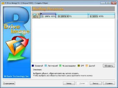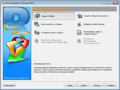 ![]() R-Drive Image является эффективной утилитой для создания файлов образа диска и резервного копирования данных. Файл образа диска, содержащий точную, "байт в байт" копию жесткого диска, раздела или логического диска, может быть создан без перезагрузки компьютера и с различным уровнем сжатия данных. Созданный образ диска может быть сохранен на носителях различного вида, включая такие съемные носители, как CD-R(W)/DVD, Iomega Zip и Jazz диски. R-Drive Image восстанавливает образ диска на оригинальный диск, на другой раздел или на свободное неформатированное пространство диска без перезагрузки системы. Для восстановления системного или заблокированного раздела R-Drive Image переключается в псевдографический режим напрямую из Windows или запускается загрузочная версия программы с CD/DVD или комплекта дискет. Используя R-Drive Image, вы можете быстро и полностью восстановить систему после тотальной потери данных, вызванной сбоем системы, вирусной атаки или аварией аппаратного обеспечения компьютера. Вы также можете использовать R-Drive Image для массового клонирования системы в случаях, когда необходимо установить одну, уже настроенную систему, на несколько идентичных компьютеров. Другими словами, вы можете вручную настроить одну систему, создать её образ и затем развернуть этот образ на остальных идентичных компьютерах, экономя время и средства. При необходимости восстановления лишь нескольких файлов, образ диска может быть присоединен как виртуальный диск; данные с него, т.е. напрямую с образа диска, легко копируются посредством Проводника Windows или других файловых утилит. Улучшения в версии: * В загрузочной версии добавился видео драйвер xgi. * Если при восстановлении/проверке многофайлового архива некоторые его части недоступны, то теперь можно указать путь к ним. Операционная система: Windows® XP/Vista/7/8 Год выпуска: 2014 Версия: 5.3 Build 5303 Платформа: Windows Язык интерфейса: Многоязычный + Русский Лекарство: Присутствует Тип файла: .rar Размер: 186,57 Мб Скачать R-Drive Image 5.3 Build 5303 + Portable