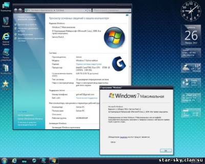 ![]() 32-х битная операционная система Windows 7 с интегрированными обновлениями и оформлением AeroBlue на 1 DVD. Сборка основана на официальном образе MICROSOFT MSDN. Полностью ручная установка, ничем ни отличающаяся от оригинала. Интегрированы: ? Пакет оформления ""W7Elegant Aero Blue v5.5 Final" от Jekson07. ? Internet Explorer 10 ru Prev (опционно), ? обновления по январь 2013 г. важные и рекомендуемые, ? дополнительные темы оформления рабочего стола, ? дополнительные гаджеты рабочего стола, ? дополнительные картинки фона рабочего стола, ? дополнительные хранители экрана, ? 7-Zip 9.22b с оформлением NewLookDark, Примечание: установка системы длится немного дольше, чем при установке с оригинального диска. В конце установки ОС, после установки пакета оформления система будет принудительно перезагружена для применения изменений, поэтому вожможно предупреждение об ошибке. Ничего страшного, после перезагрузки все встанет на свои места и установка ОС закончится. Все программы легко деинсталлировать после установки системы, включая пакет оформления W7Elegant Aero Blue. Изменения в образе ОС: показать все иконки на рабочем столе, показать "Выполнить" в стартовом меню, в меню "файл" добавлено "открыть файл блокнотом", в меню "компьютер" добавлено расширенное подменю для управления системой, показать скрытые файлы и папки, показать расширение файлов, изменен сайт поиска на google в IE10, Отключен UAC. Службы, процессы и компоненты Windows оставлены по умолчанию. Ничего не удалялось и не менялось. Полностью ручная установка, ничем ни отличающаяся от оригинала. Системные требования: - 32-разрядный (x86) или 64-разрядный (x64) процессор с тактовой частотой 1 гигагерц (ГГц) или выше; - 1 гигабайт (ГБ) (для 32-разрядной системы) или 2 ГБ (для 64-разрядной системы) оперативной памяти (ОЗУ); - 16 гигабайт (ГБ) (для 32-разрядной системы) или 20 ГБ (для 64-разрядной системы) пространства на жестком диске; - графическое устройство DirectX 9 с драйвером WDDM версии 1.0 или выше. Контрольные суммы: CRC32: 0514F7C3 MD5: 5836229703DABC0524AC475132D30FDF SHA-1: 4F140DC0FD7AFF3186EED21F9D4A24662109D256 Дата выпуска: январь 2013 (интегрированы обновления) Название: Microsoft Windows 7 Ultimate Ru x86 SP1 Версия: 6.1.7601.17514 Автор сборки: Golver Язык интерфейса: Русский Разрядность: 32 бит (x86) Лечение: в комплекте Размер: 2.9 Gb Скачать Windows 7 Ultimate AeroBlue by Golver 01.2013 (х86/RUS) Зеркала на всякий случай:
