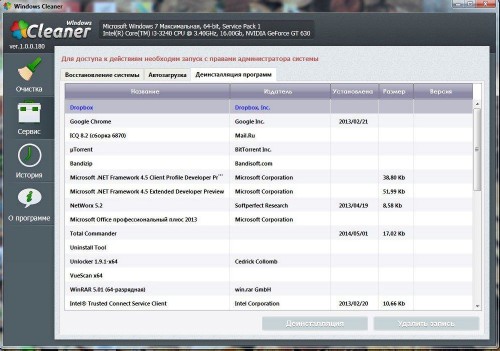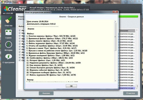 Windows Cleaner - это системная утилита для очистки системы от всякого мусора и оптимизации ее работы. После установки разного рода приложений и программ остаются их следы в операционной системе и реестре, которые занимают место и ухудшают быстродействие. Это приложение найдет все такие файлы и неиспользуемые элементы, а потом удалит их без вреда для других программ. В результате система Windows будет быстрее грузиться, а запуск и обработка приложений значительно улучшится, что сразу же станет заметно. Это же касается и работы в интернете при использовании любого браузера - после очистки захламляющих временных файлов, файлов журнала, cookie и кэша создастся впечатление, что web-обозреватель просто летает. Если перед оптимизацией все-таки есть сомнения относительно работоспособности системы в дальнейшем, Windows Cleaner предлагает создать точку восстановления. Теперь, если что-то не понравится или удалены важные файлы и данные, все можно вернуть в первоначальное состояние за один клик. Удобно, что после каждого проведенного анализа и очистки, Windows Cleaner покажет отчет о своей работе, где будут видны все изменения, а сам отчет сохранится в таблице истории, и его при необходимости можно снова прочитать. Также здесь есть возможность управлять автозагрузкой программ при старте Windows и проводить правильную деинсталляцию не нужных программ с удалением всех "осколков" и остатков. Все это собрано в отличном и понятном интерфейсе, где каждая функция выделена в отдельную закладку, позволив освоить работу и функционал Windows Cleaner буквально с первого раза. Попробуйте это приложение в действии и удивитесь возможностям Вашей операционной системы после оптимизации. Операционная система: Windows XP/Vista/7/8/8.1 Год выпуска: 2014 Версия: 1.0.0.180 Платформа: Windows Язык интерфейса: Английский + Русский Лекарство: Не требуется Тип файла: .rar Размер: 8,46 Мб Скачать Windows Cleaner 1.0.0.180 Цитата
