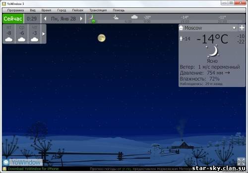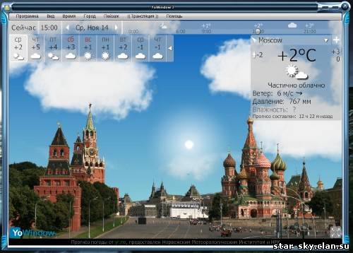 ![]() YoWindow - это монитор погоды. Программа отображает пейзаж, изменяющийся в зависимости от погоды, дневного освещения и времени года. Программа исправно отображает все возможные погодные явления: облака, дождь, снег, ветер, туман, грозу, а также солнце, луну и звезды. По сути YoWindow это модель обычного окна. Но в YoWindow у Вас есть возможность перемотать время вперед и заглянуть в будущее - увидеть прогноз погоды в нужный момент времени. В настройках YoWindow можно включить программу в автозапуск, выбрать для отображения информационные панели (интерактивная временная шкала, панель прогноза, инспектор, активировать анимацию погодной картины). Если нас интересует не только температура воздуха, то на экран следует вывести информацию о диапазоне температуры (какая она есть и какая она по ощущению), картинке неба, ветре, давлении, влажности, количестве осадков, видимости, времени восхода и заката, долготе дня и фазе луны. Также настраивается количество дней для отображения прогнозов, пейзаж (по умолчанию это “Деревня”), единицы измерения (фаренгейты, цельсии, мили, метры, узлы и прочее). Как только мы уйдем от компьютера и пройдет считанное количество минут, автоматически включится скринсейвер и на экране снова будет валить снег. И даже если на дворе конец марта, все равно YoWindow обрадует нас своей волшебной картинкой. Главные особенности: Полный контроль погоды. Прогноз погоды именно в то время которое Вам нужно. Текущая температура рядом с системными часами. Персональная поддержка метеостанции Системные требования: Windows XP/Vista/7/8 Установленный Internet Explorer и Adobe Flash Player для IE Название программы: YoWindow Unlimited Edition Версия программы: 3S Build 164 Последняя версия программы: 3S Build 164 Официальный сайт: ссылка Язык интерфейса: Русский, Английский, и другие Лечение: готовый серийник Тип файла: .rar Размер: 17,40 Мб Скачать YoWindow Unlimited Edition 3S Build 164 RC